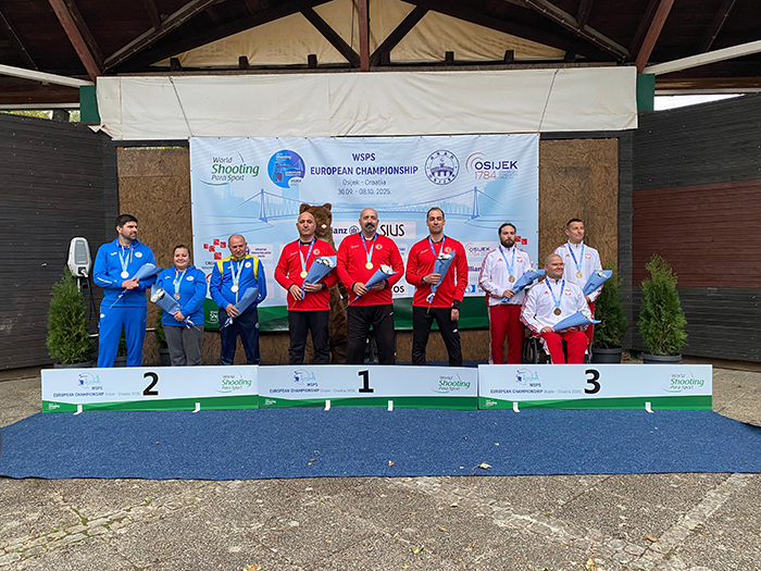 30 Eylül - 08 Ekim 2025 tarihleri arasında Hırvatistan’ın Osijek kentinde yapılmakta olan Para Atıcılık Avrupa Şampiyonası 25 M Tabanca Erkekler (P3) kategorisinde ülkemizi temsil eden milli sporcularımız Muharrem Korhan YAMAÇ, Murat OĞUZ ve Çağrı YILMAZ bireysel skorları toplamında takım halinde Altın Madalyanın sahibi oldular.