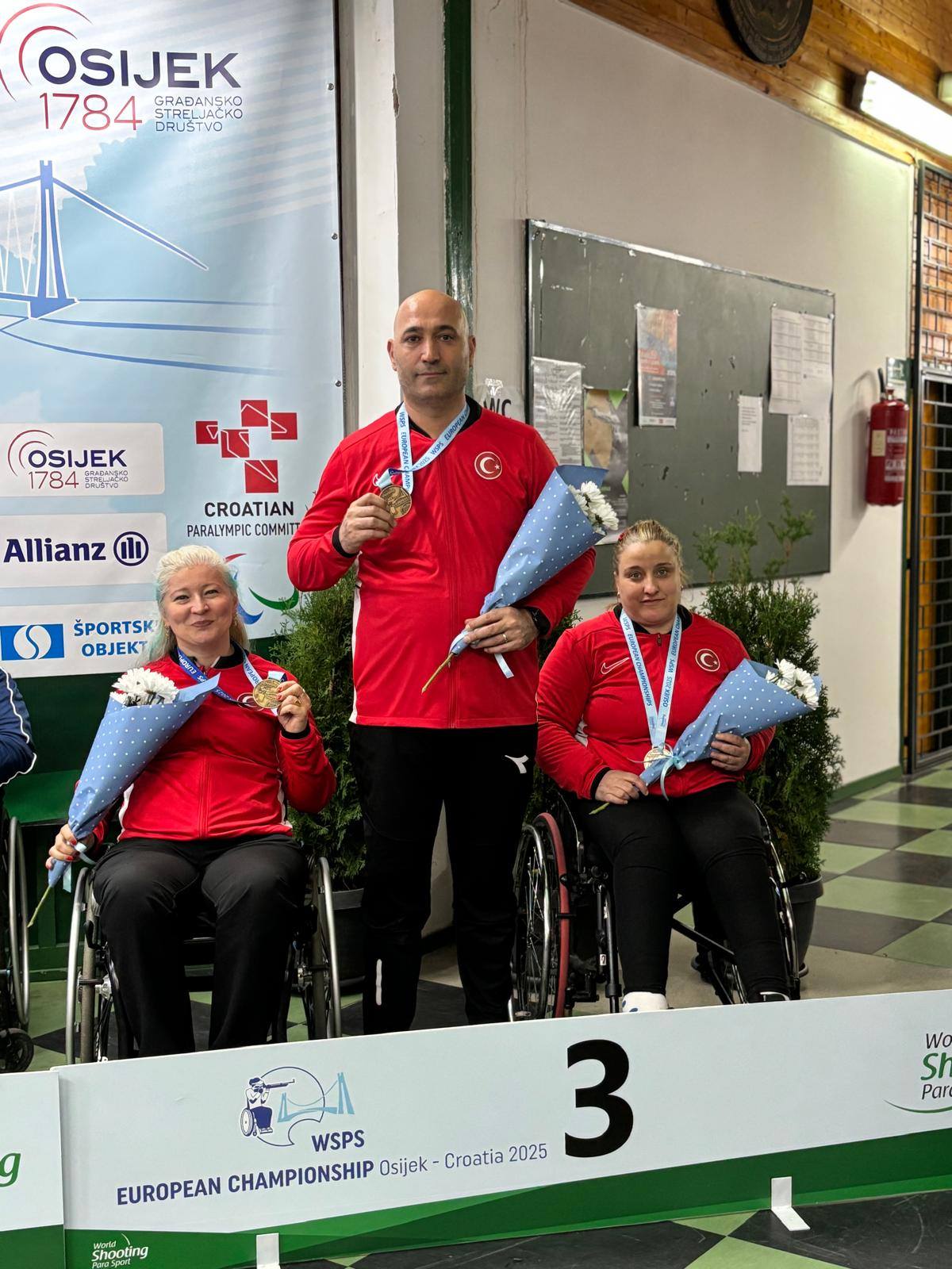 30 Eylül - 08 Ekim 2025 tarihleri arasında Hırvatistan’ın Osijek kentinde yapılmakta olan Para Atıcılık Avrupa Şampiyonası 50 M Tabanca Karışık (P4) SH1 kategorisinde ülkemizi temsil eden milli sporcularımız Murat OĞUZ, Aysel ÖZGAN ve Ayşegül PEHLİVANLAR bireysel skorları toplamında takım halinde Bronz madalyanın sahibi oldular.